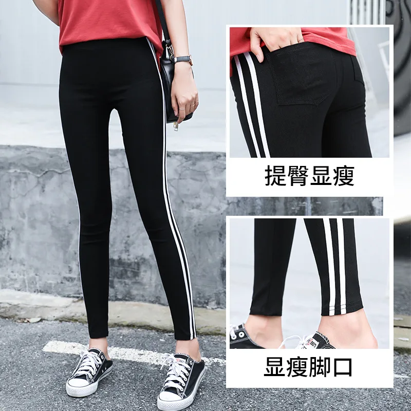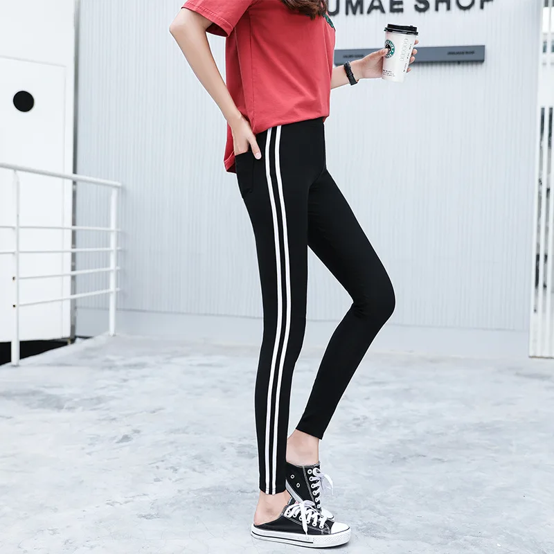 Women Side Stripe Legging Pants Fashion Large Size Workout Polyester Leggings Casual Autumn Black Leggings Women Plus size XXXL