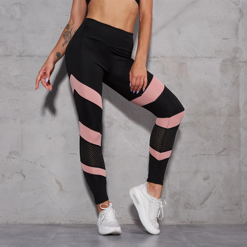 | NORMOV Women Leggings Fashion Mesh Patchwork Hollow Out High Wasit Push Up Legins Ankle Length Leggins Fitness Leggings Feminina |