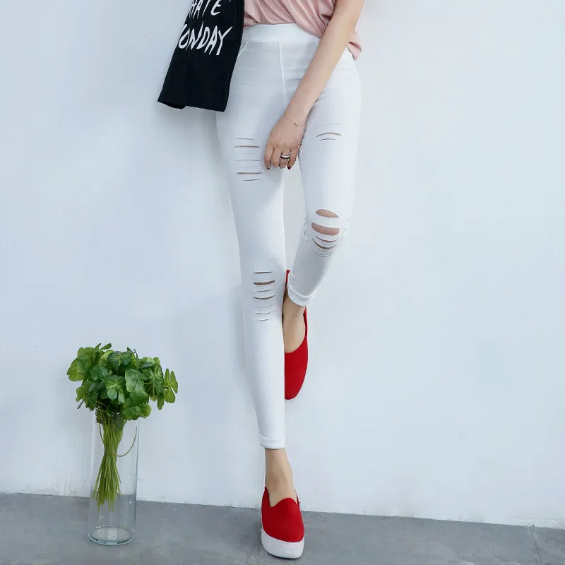 2019 Fashion Pants Woman Autumn Women Full Length Cotton Casual Pants White black Sweatpants Broken Pants Fashion Pencil trouser