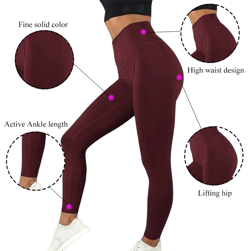 | CALOFE Burgundy Fitness Leggings Women High Waist Push Up Elastic Gym Sport Leggings Spandex Plus Size Workout Legging Pants |
