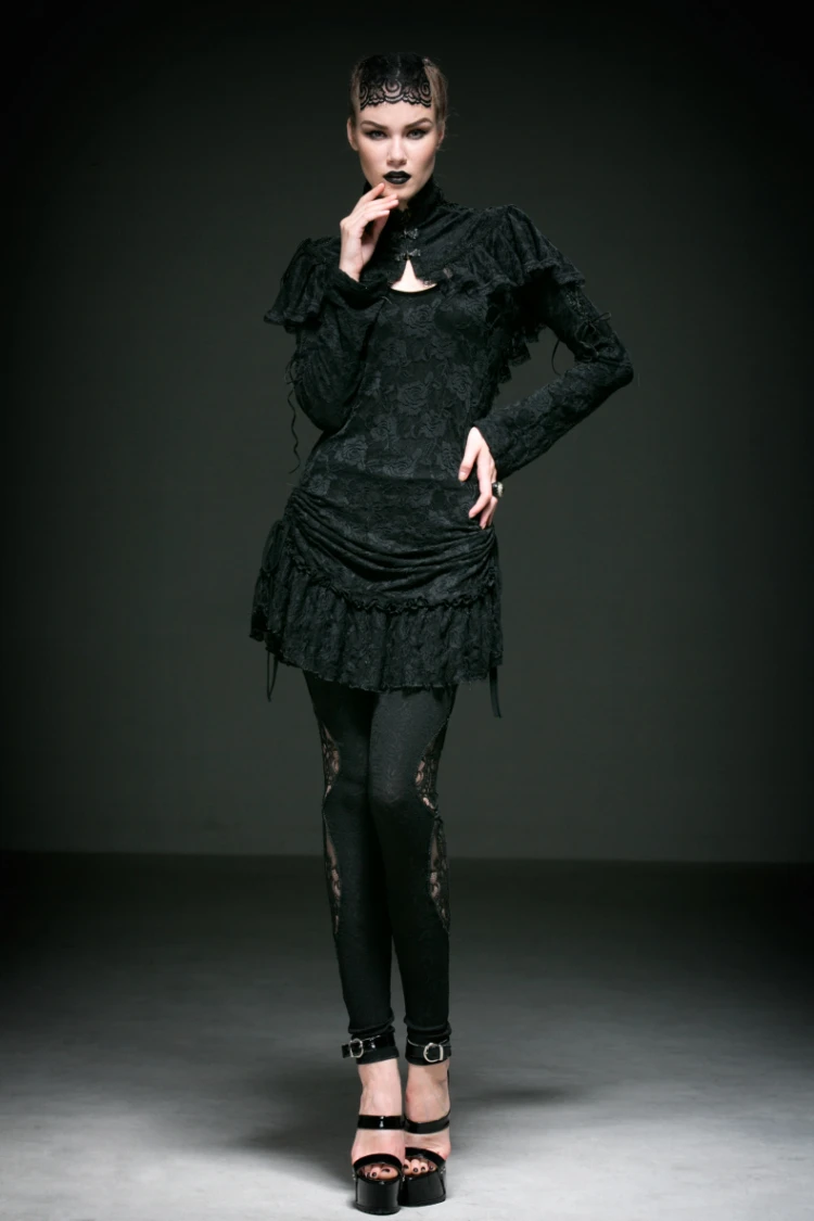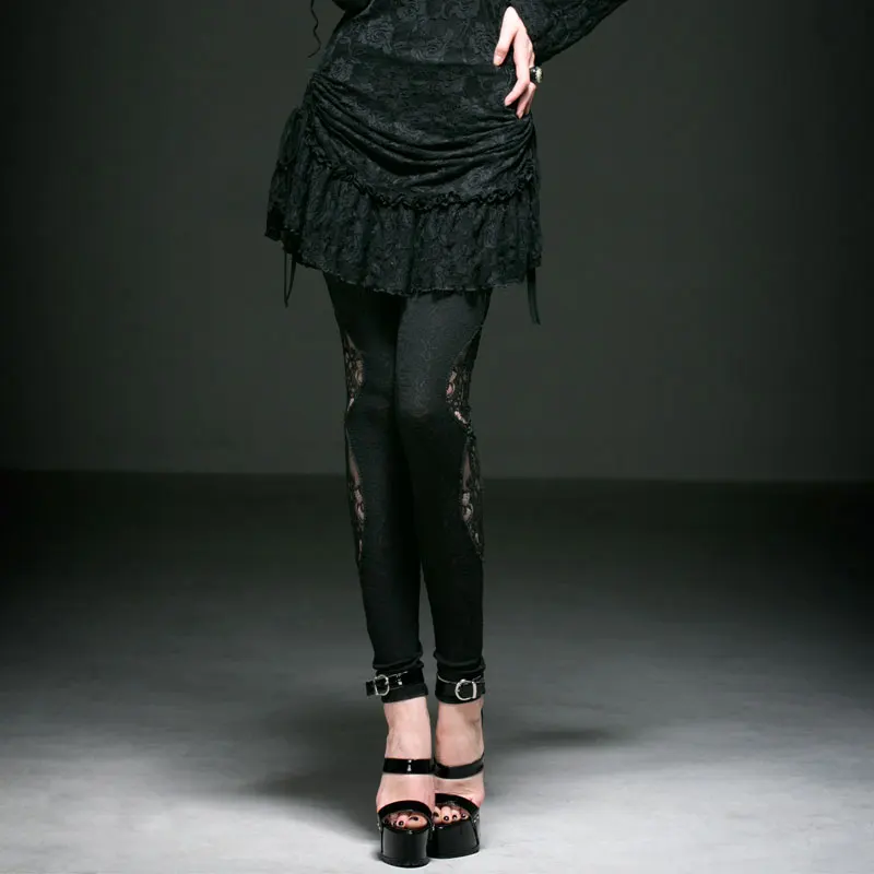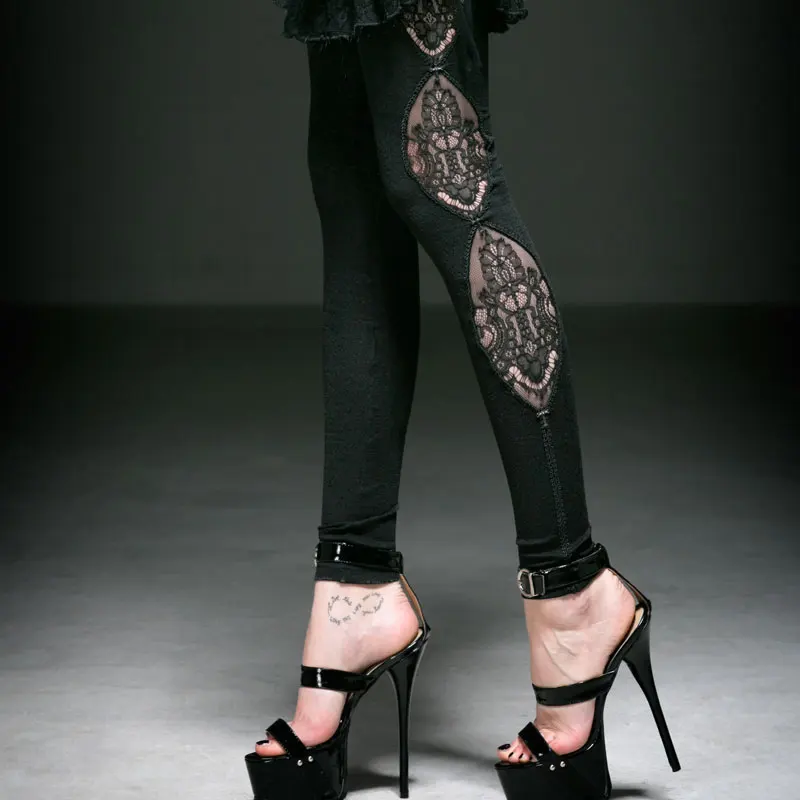 | Gothic Knitted Dark Fringe Jacquard Legging Steampunk Visual Kei Black Sexy Hollow Out Leggings |