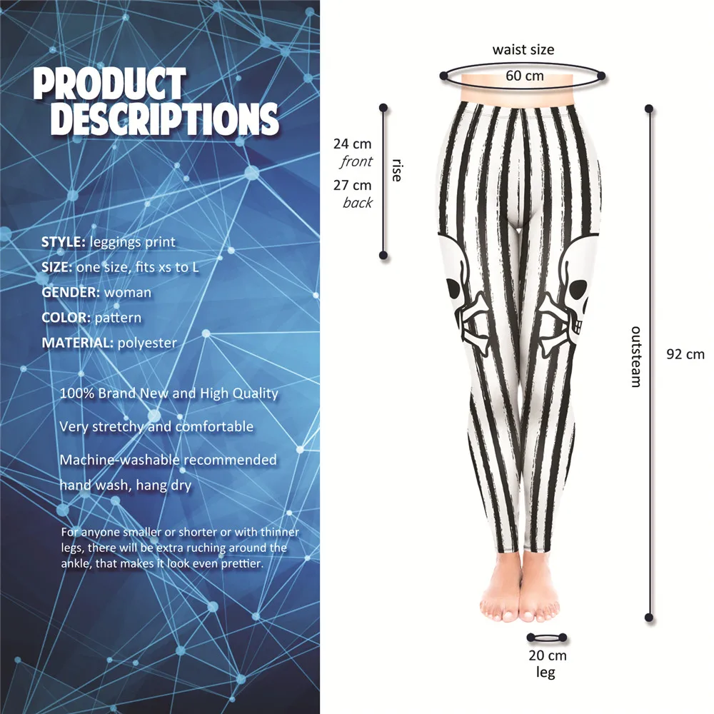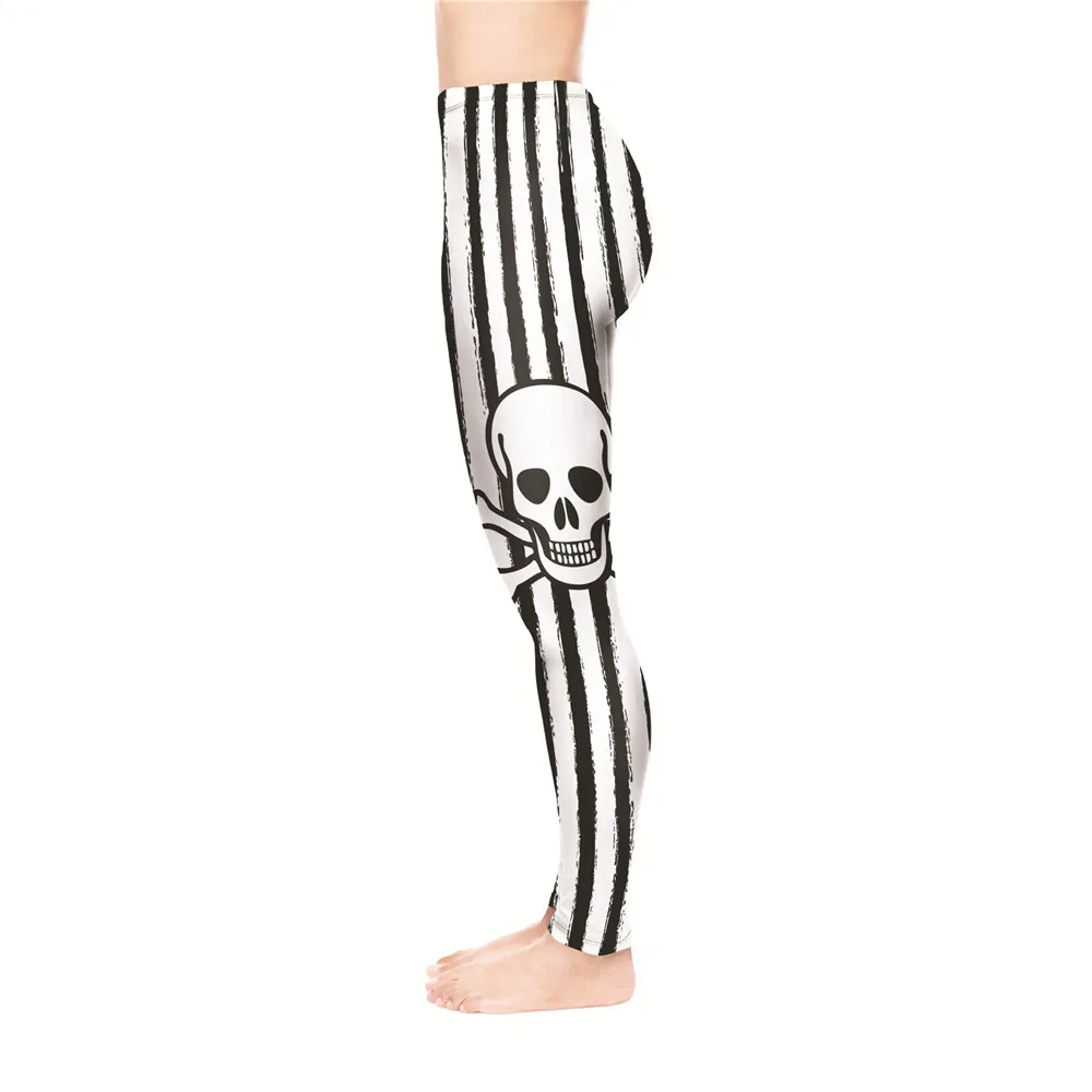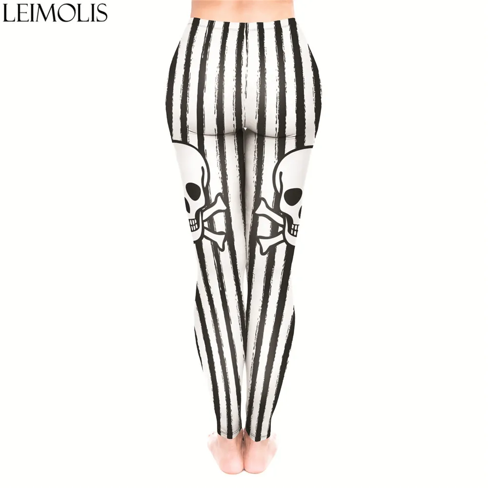 | LEIMOLIS 3D print Gothic Striped Skull white fitness push up workout leggings women plus size High Waist punk rock sexy leggins |