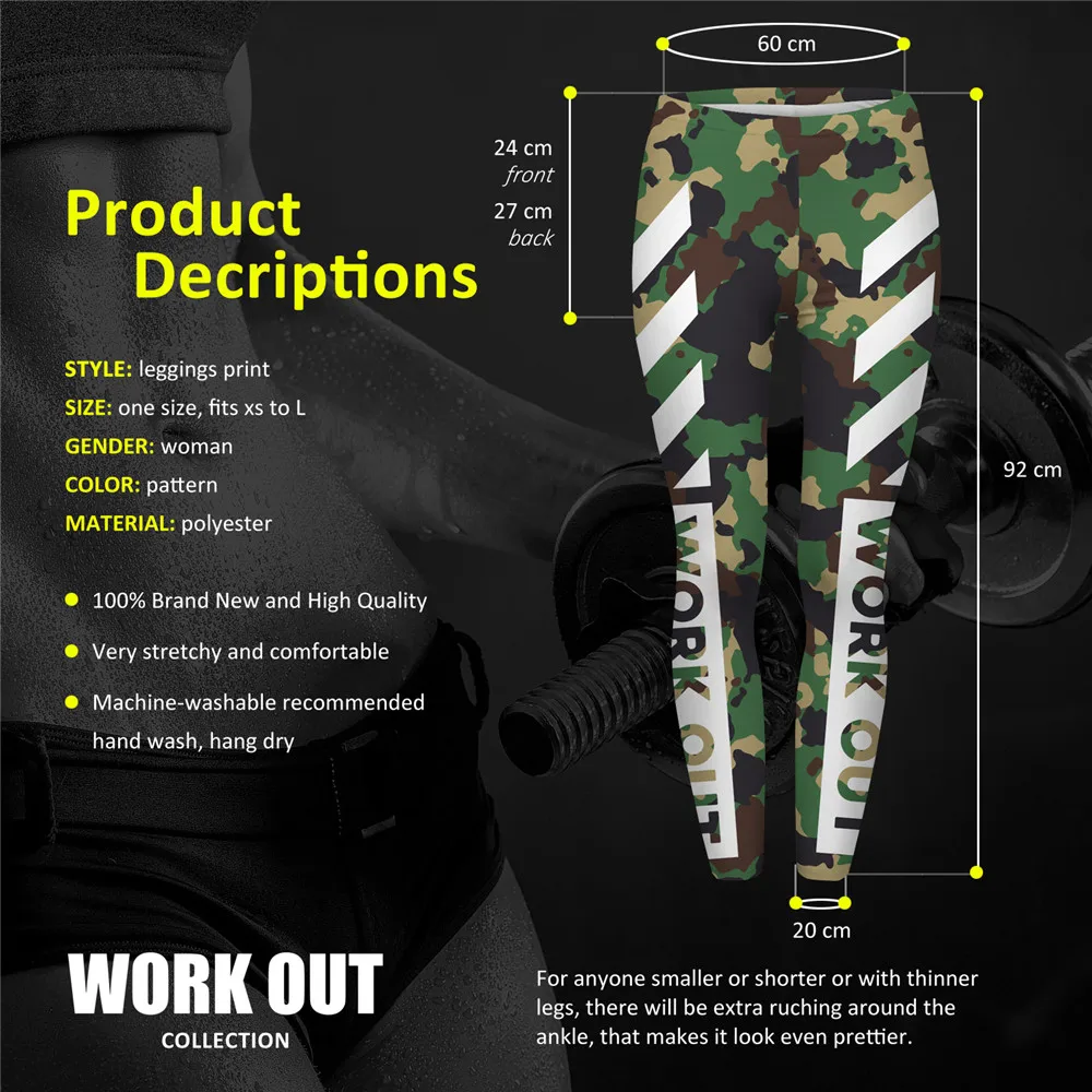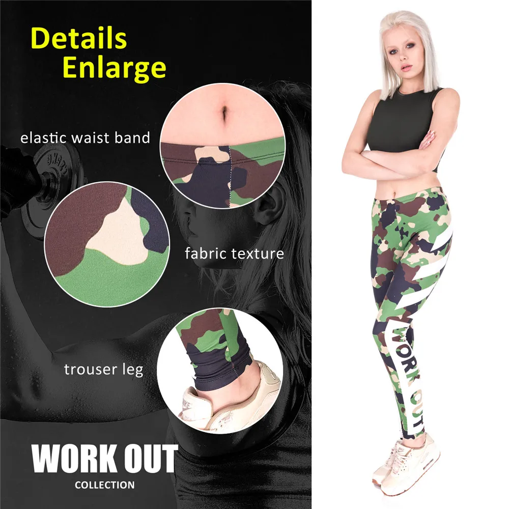 | LEIMOLIS 3D print camouflage Striped Letter fitness push up workout leggings women plus size High Waist punk rock sexy leggins |