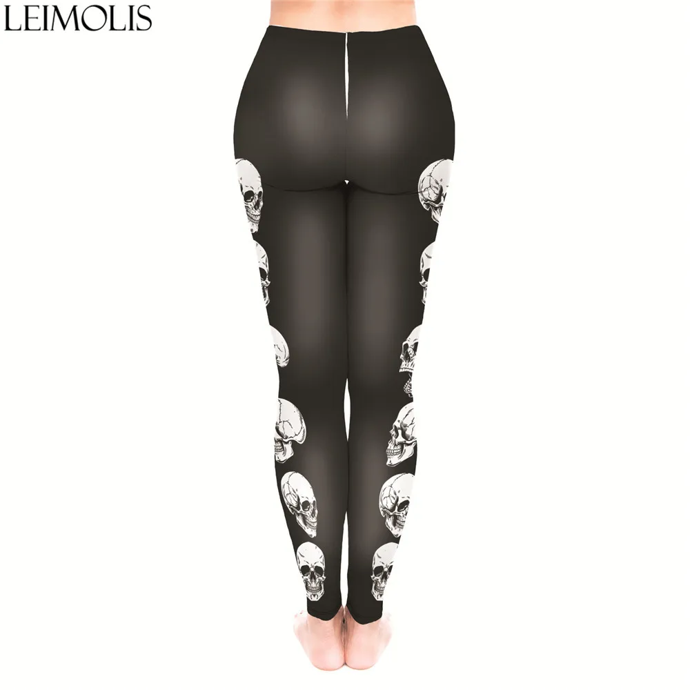 LEIMOLIS 3D print Gothic skull Striped black fitness push up workout leggings women plus size High Waist punk rock sexy leggins