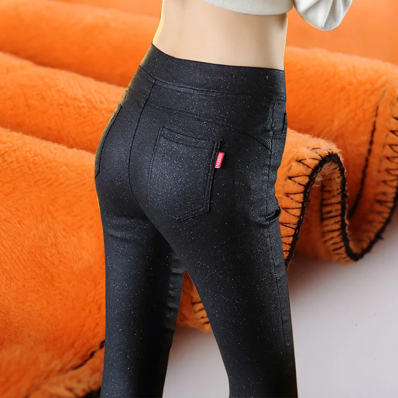 | Plus velvet leggings women wear autumn and winter thick color gold high waist pants spring and autumn feet pants |