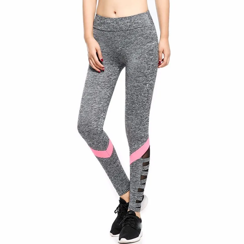 | AO SHENG Latest Arrival Fitness Cut Out legging With Pink Stripes Newest Designs High Waist Patchwork Mesh Leggings |