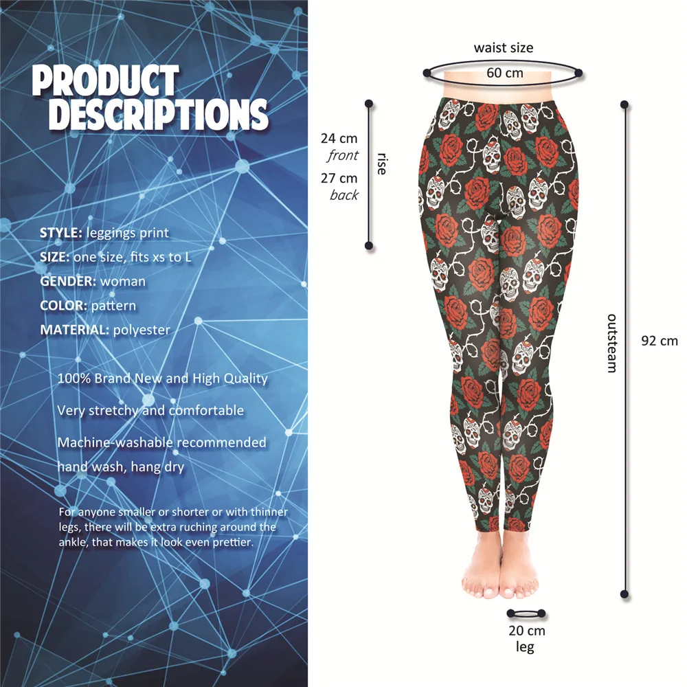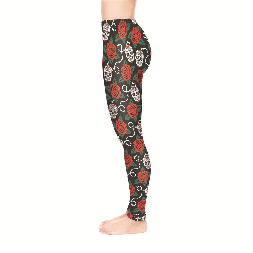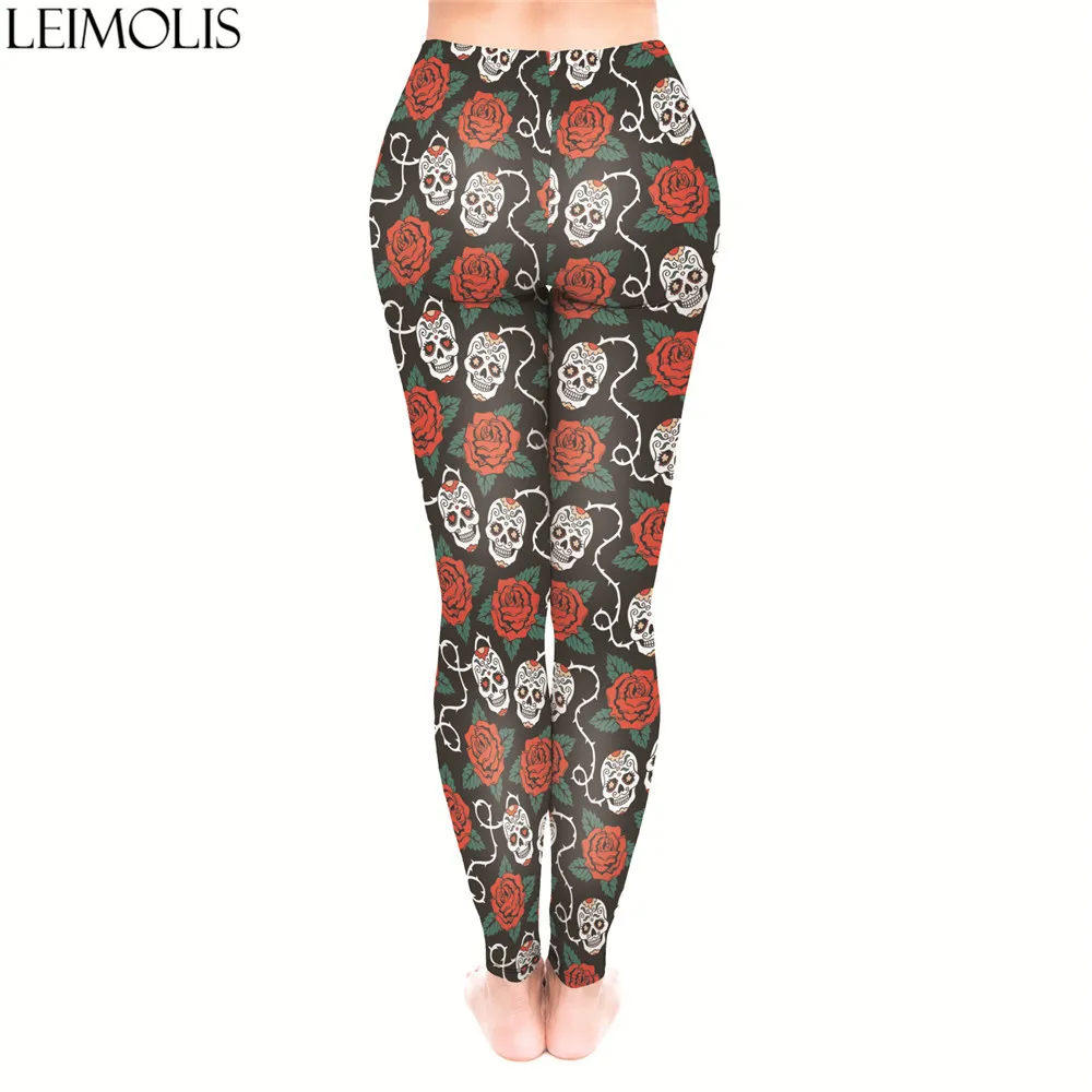 | LEIMOLIS 3D print Gothic rose flower skull fitness push up workout leggings women plus size High Waist punk rock sexy leggins |