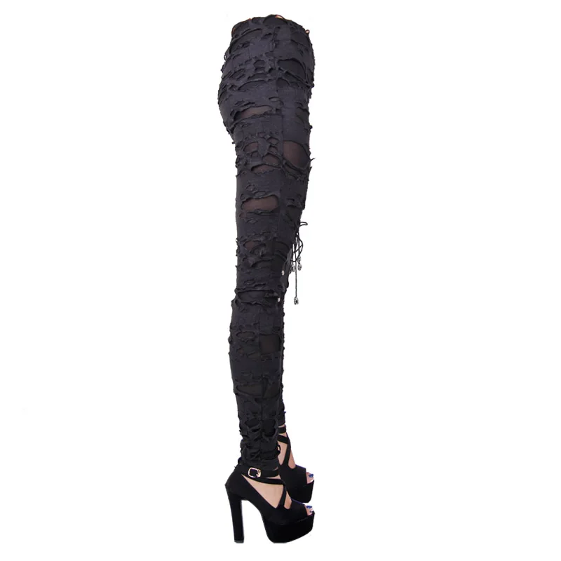 Punk Fashion Skinny Skull Ripped Tights for Girls, Ladies