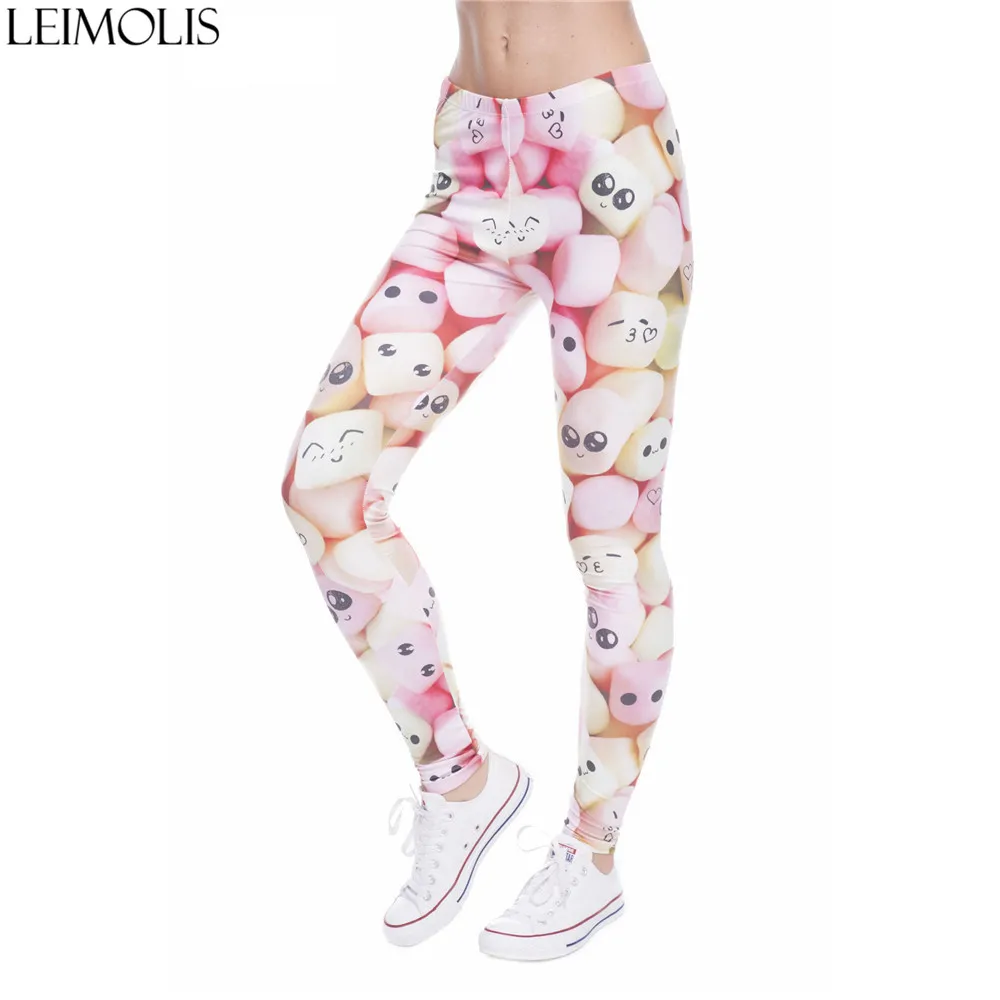 LEIMOLIS 3D print Lovely marshmallow sugar fitness push up workout leggings women Harajuku High Waist punk rock sexy leggins