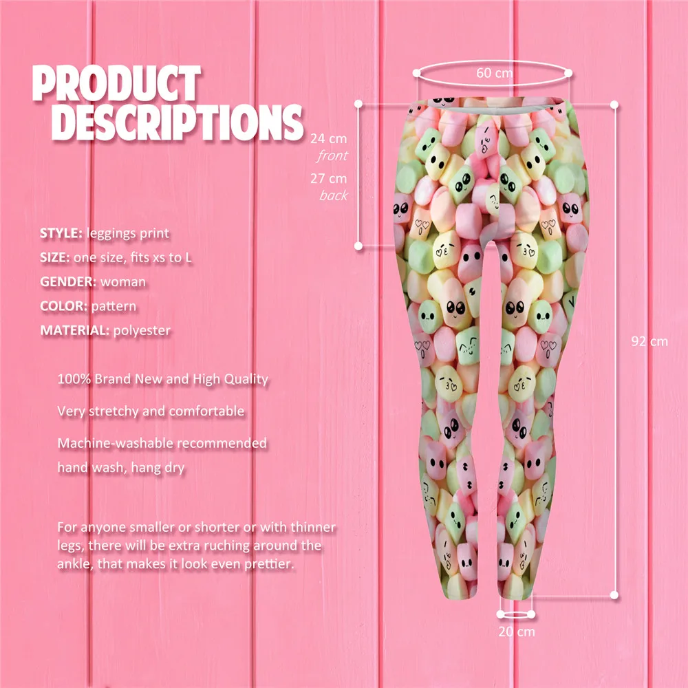 | LEIMOLIS 3D print Lovely marshmallow sugar fitness push up workout leggings women Harajuku High Waist punk rock sexy leggins |