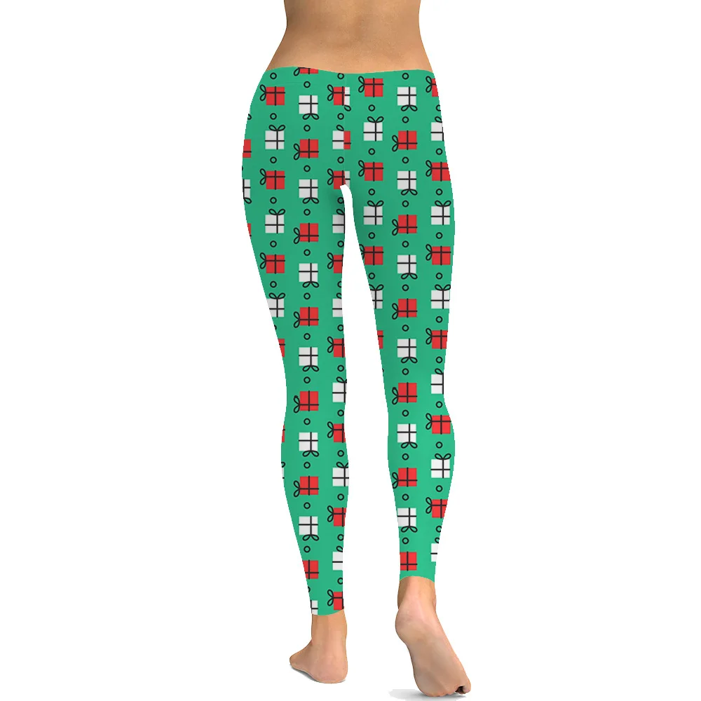LEIMOLIS sexy Christmas gift green print push up leggings plus size